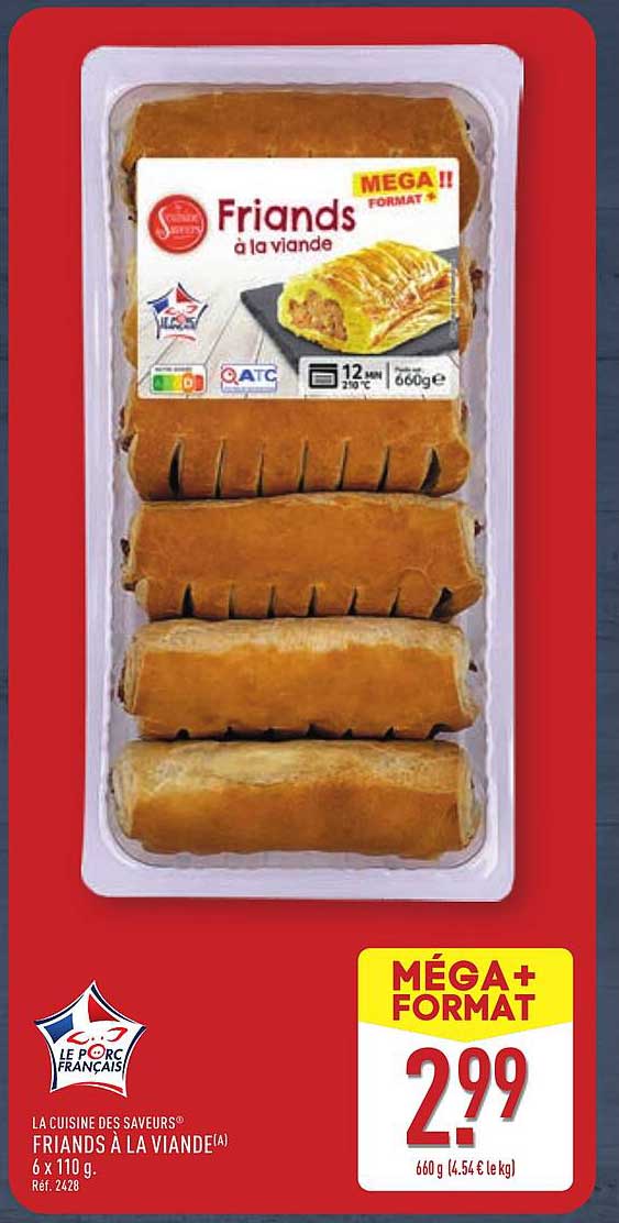 Découvrez dès maintenant la offre Friands à la viande dans le catalogue de ALDI. Cette offre est valable du 31/12/2024 au 06/01/2025.