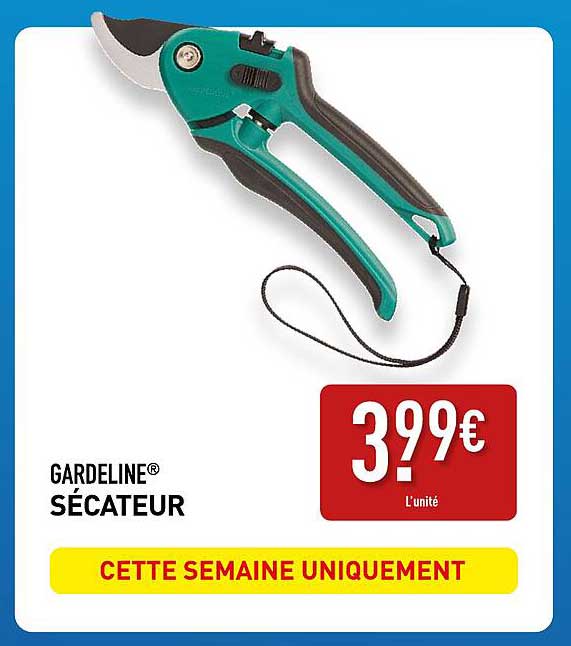 Cette semaine, ALDI vous propose une super affaire avec le sélecteur GARDELINE® à seulement 3,99€. C'est l'outil parfait pour tous vos besoins de jardinage. Que vous soyez un jardinier amateur ou un professionnel, cet outil vous simplifiera la vie et vous aidera à garder vos plantes en bonne santé.