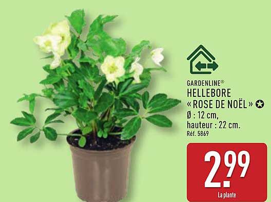 La magnifique plante Hellebore, également connue sous le nom de « Rose de Noël », est disponible chez ALDI à un prix exceptionnel de seulement 2,99 €. Cette plante, qui égaye votre espace intérieur tout en apportant une touche de nature, est parfaite pour apporter une ambiance festive durant les mois d'hiver. Profitez de cette offre valable du 2025-11-11 au 2025-11-17 pour embellir votre maison.
