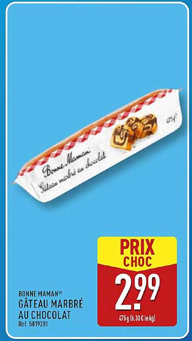 Le gâteau marbré au chocolat de Bonne Maman est une délicieuse gourmandise qui ravira toutes vos papilles. Avec son moelleux inégalé et son mélange parfait de chocolat et de vanille, ce dessert est idéal pour les pauses café ou les goûters en famille. Grâce à cette offre limitée, vous pouvez le savourer à prix réduit !