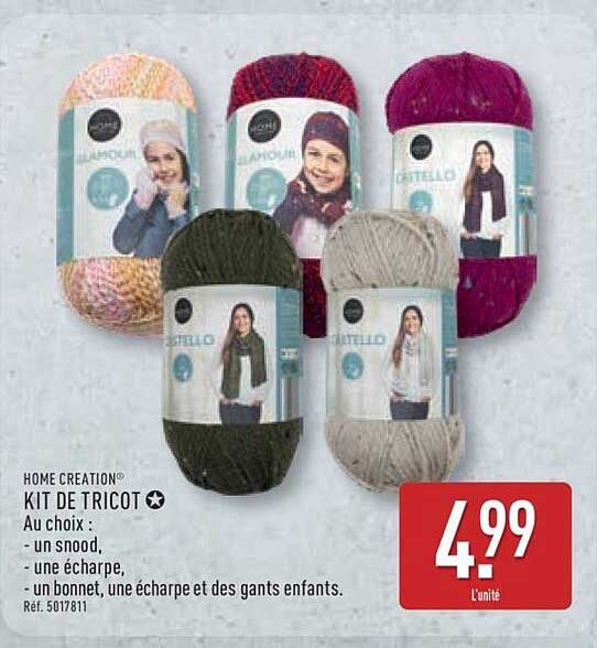 Si vous êtes passionné(e) de tricot ou si vous souhaitez vous lancer dans cette activité créative, ne manquez pas le KIT DE TRICOT proposé par ALDI. Disponible au prix exceptionnel de 4,99 € l’unité, ce kit contient tout ce dont vous avez besoin pour créer de jolis accessoires pour l’hiver. Avec une gamme de choix incluant un snood, une écharpe, et même un bonnet, ce kit est idéal pour toute la famille.
