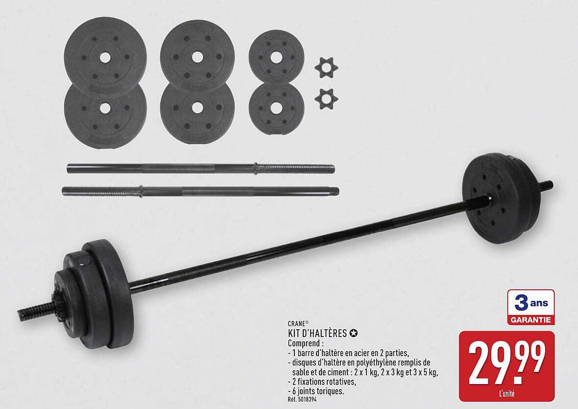 Découvrez dès maintenant la offre KIT D’HALTÈRES dans le catalogue de ALDI. Cette offre est valable du 21/01/2025 au 27/01/2025.