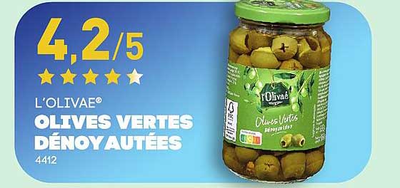 Vous voulez être informé immédiatement dès que le L'olivaé® Olives Vertes Dénoyautées est en promotion? Inscrivez-vous à notre alerte d'offres. Vous recevrez une notification dès que le produit sera disponible à un prix avantageux.