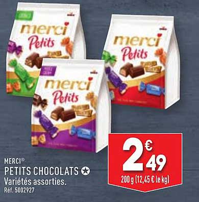 Découvrez l'offre de Merci® Petits Chocolats chez ALDI! Cette offre fantastique est maintenant disponible dans le nouveau catalogue de ALDI. Profitez de cette occasion et économisez considérablement sur votre achat.