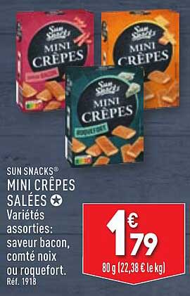 Découvrez l'offre de Mini Crêpes Salées chez ALDI! Cette offre fantastique est maintenant disponible dans le nouveau catalogue de ALDI. Profitez de cette occasion et économisez considérablement sur votre achat.