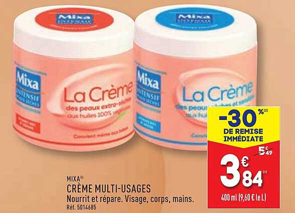 Découvrez dès maintenant la offre MIXA® CRÈME MULTI-USAGES dans le catalogue de ALDI. Cette offre est valable du 15/10/2024 au 21/10/2024.