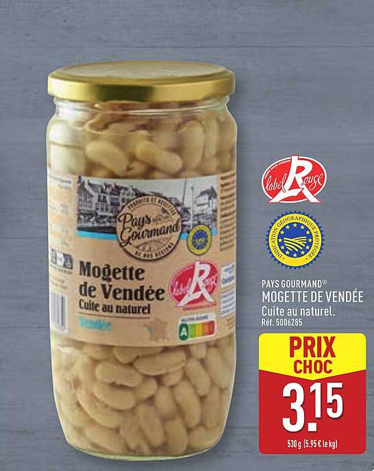 Découvrez la Mogette de Vendée, un produit régional emblématique, proposée par ALDI à un prix exceptionnel ! Cette délicieuse légumineuse, cuite au naturel, est prête à être intégrée dans vos plats préférés. Que vous souhaitiez l'ajouter à une ratatouille, un cassoulet ou simplement la savourer en accompagnement, elle saura ravir vos papilles.