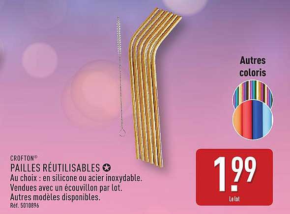 Découvrez l'offre de Pailles Réutilisables chez ALDI! Cette offre fantastique est maintenant disponible dans le nouveau catalogue de ALDI. Profitez de cette occasion et économisez considérablement sur votre achat.