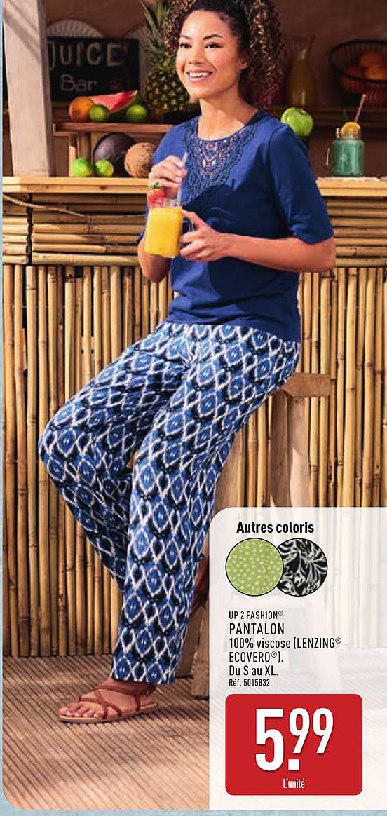 Cette semaine, ALDI vous propose une offre exceptionnelle sur un pantalon élégant et confortable, parfait pour les journées estivales. Avec sa matière en viscose LENZING® ECOVERO®, ce pantalon est non seulement stylé, mais aussi durable et respectueux de l'environnement. Profitez de cet article en promotion du 3 au 9 juin 2025, à un prix imbatable.