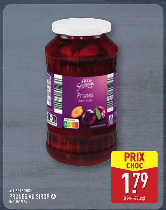 Découvrez les délicieuses prunes au sirop de la marque All Seasons, un incontournable pour agrémenter vos desserts et vos plats! Disponibles en promo du 11 au 17 novembre 2025, ces prunes sont idéales pour accompagner vos gâteaux, yaourts ou même pour une dégustation à la cuillère. Un vrai régal pour les amateurs de fruits sucrés et savoureux!