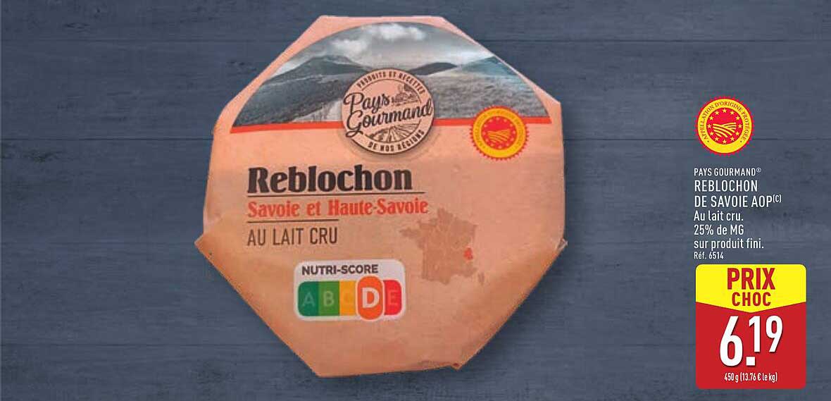 À seulement 6,19 € pour 450 g, cette offre représente une excellente occasion de remplir votre réfrigérateur de saveurs. Normalement, un Reblochon de cette qualité peut être bien plus onéreux. Ne laissez pas passer cette occasion de faire des économies tout en vous faisant plaisir. Retrouvez-le sans tarder dans votre ALDI local !