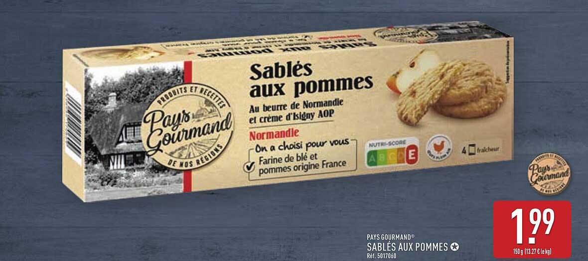 Découvrez l'offre de Sablés Aux Pommes chez ALDI! Cette offre fantastique est maintenant disponible dans le nouveau catalogue de ALDI. Profitez de cette occasion et économisez considérablement sur votre achat.