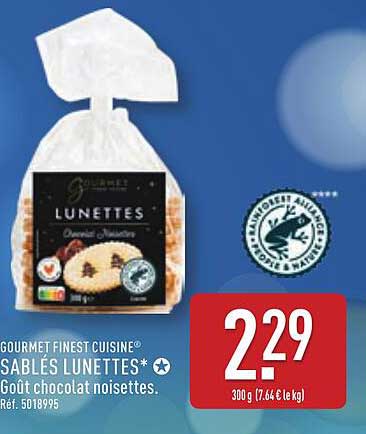 Découvrez l'offre de Sablés Lunettes* chez ALDI! Cette offre fantastique est maintenant disponible dans le nouveau catalogue de ALDI. Profitez de cette occasion et économisez considérablement sur votre achat.