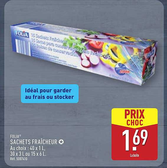 Actuellement, ces sachets frais sont proposés à seulement 1,69 €, un prix choc comparé au tarif habituel qui vous permettra de faire de réelles économies sur vos courses. Profitez de cette offre pour stocker vos aliments efficacement sans vous ruiner.