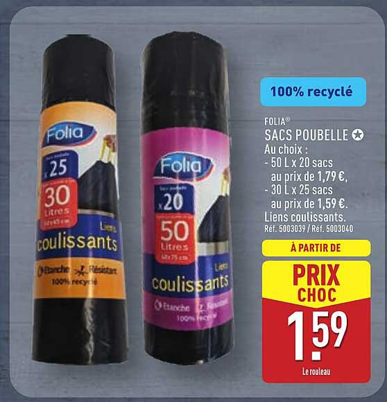 Les sacs poubelle Folia sont incontournables pour garder votre espace propre et organisé. Profitez de cette promotion exceptionnelle, valable du 21 au 27 octobre 2025, et faites le plein de ces sacs pratiques et résistants. Que vous ayez besoin de les utiliser pour votre maison, votre bureau ou vos projets de nettoyage, ces sacs sont l'allié parfait pour un quotidien sans tracas.