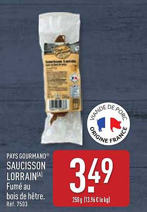 Découvrez l'offre de Saucisson Lorrain(A) Fumé Au Bois De Hêtre. chez ALDI! Cette offre fantastique est maintenant disponible dans le nouveau catalogue de ALDI. Profitez de cette occasion et économisez considérablement sur votre achat.