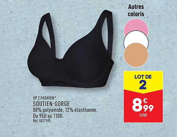 Découvrez l'offre de Soutien-Gorge chez ALDI! Cette offre fantastique est maintenant disponible dans le nouveau catalogue de ALDI. Profitez de cette occasion et économisez considérablement sur votre achat.