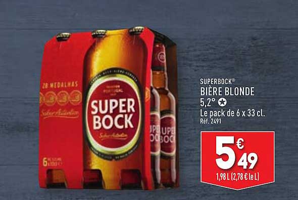Découvrez la superbe offre de Superbock® Bierre Blonde dans le nouveau catalogue de ALDI. En plus de cette offre, vous trouverez de nombreuses autres réductions attrayantes. Vous pouvez facilement commander le Superbock® Bierre Blonde en ligne via le site web de ALDI ou l'acheter dans un magasin près de chez vous.