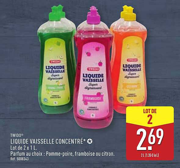 Découvrez la superbe offre de Twido® Liquide Vaisselle Concentré* dans le nouveau catalogue de ALDI. En plus de cette offre, vous trouverez de nombreuses autres réductions attrayantes. Vous pouvez facilement commander le Twido® Liquide Vaisselle Concentré* en ligne via le site web de ALDI ou l'acheter dans un magasin près de chez vous.