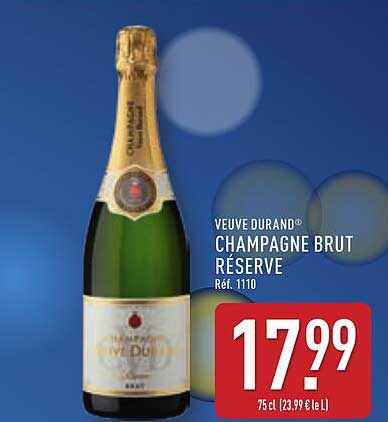 Découvrez l'offre de Veuve Durand® Champagne Brut Réserve chez ALDI! Cette offre fantastique est maintenant disponible dans le nouveau catalogue de ALDI. Profitez de cette occasion et économisez considérablement sur votre achat.
