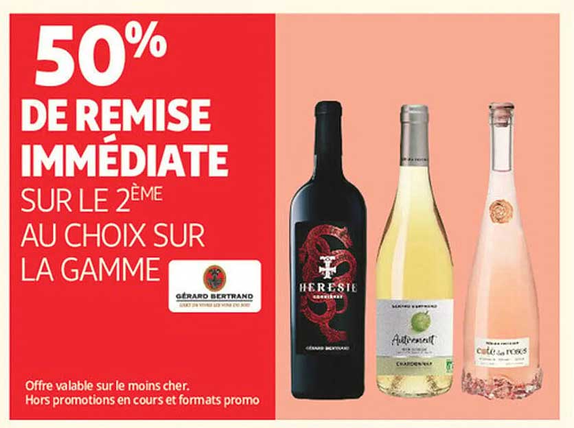 Profitez d'une offre exceptionnelle sur les vins Gérard Bertrand ! Du 12 au 22 novembre 2025, bénéficiez de 50% de remise immédiate sur le deuxième vin sélectionné de la gamme. C'est une occasion à ne pas manquer pour découvrir ou redécouvrir des saveurs uniques tout en réalisant des économies.