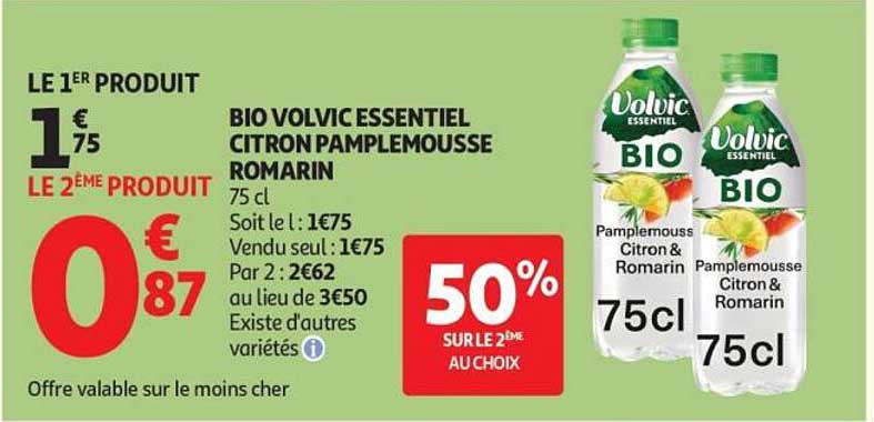 Découvrez l'incroyable promotion sur la bouteille de BIO Volvic Essentiel au citron et pamplemousse, parfaite pour accompagner vos moments de détente et d'hydratation. Cette boisson pétillante apporte une touche de fraîcheur et un délicieux goût fruité qui saura ravir vos papilles. C’est l’occasion rêvée de vous faire plaisir tout en faisant des économies !