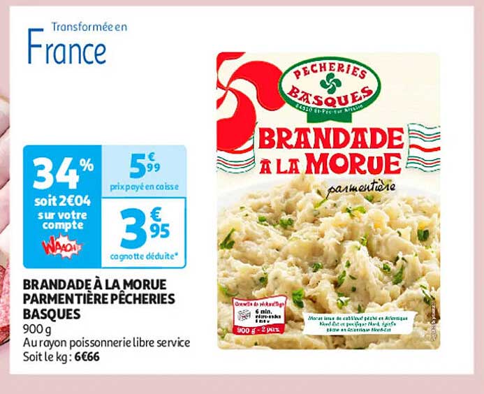 Offre de Brandade À La Morue Parmentière Pêcheries Basques chez Auchan Supermarché