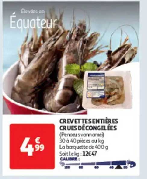 Offre de Crevettes Entières Crues Décongelées chez Auchan Supermarché