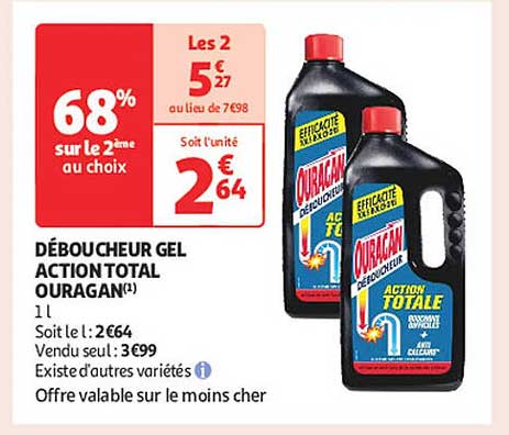 Offre de Déboucheur Gel Action Total Ouragan chez Auchan Supermarché