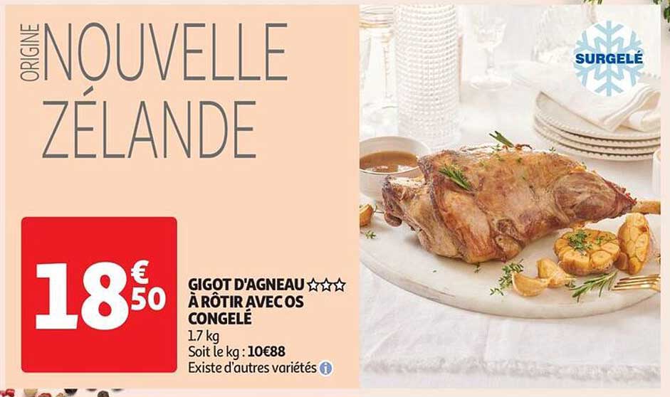 Découvrez dès maintenant la offre Gigot d’agneau à rôtir avec os congelé dans le catalogue de Auchan Supermarché. Cette offre est valable du 15/04/2025 au 21/04/2025.