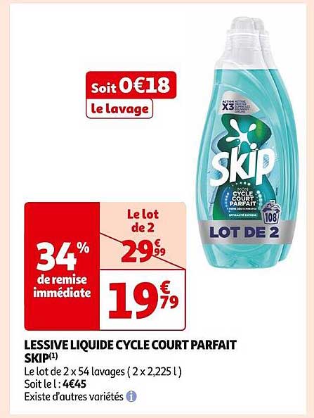 Offre de Lessive Liquide Cycle Court Parfait Skip chez Auchan Supermarché