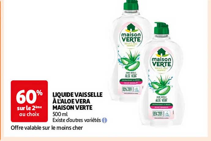 Offre de Liquide Vaisselle À L'aloe Vera Maison Verte chez Auchan Supermarché