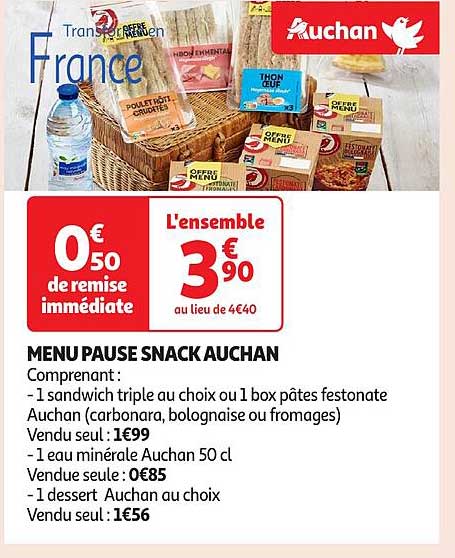 Offre de Menu Pause Snack Auchan chez Auchan Supermarché