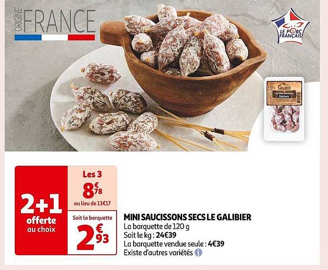 Offre de Mini Saucissons Secs Le Galibier chez Auchan Supermarché