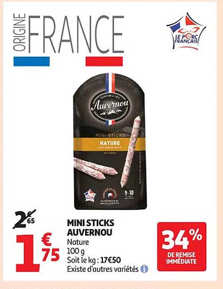 Actuellement, ces MINI STICKS AUVERNOU sont proposés à seulement 1,75 € au lieu de 2,65 €. Cela représente une économie significative par rapport au prix habituel, ce qui en fait une offre imbattable pour les amateurs de bonnes choses.