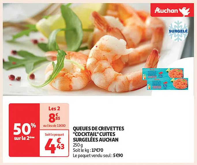 Découvrez l'offre de Queues De Crevettes "Cocktail" Cuites Surgelées Auchan chez Auchan Supermarché! Cette offre fantastique est maintenant disponible dans le nouveau catalogue de Auchan Supermarché. Profitez de cette occasion et économisez considérablement sur votre achat.