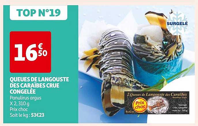 Offre de Queues De Langouste Des Caraïbes Crue Congelée chez Auchan Supermarché
