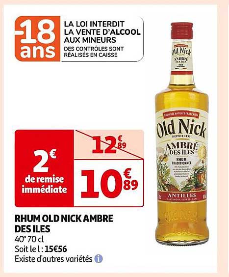 Offre de Rhum Old Nick Ambre Des Iles chez Auchan Supermarché