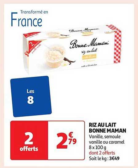Découvrez une délicieuse offre sur le riz au lait Bonne Maman, un incontournable pour les amateurs de desserts réconfortants. Profitez d'un goût authentique à un prix imbattable !