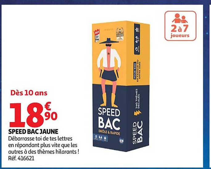 Actuellement proposé à 18,90 €, cette offre représente une économie par rapport au prix habituel. En choisissant SPEED BAC JAUNE, vous investissez dans de nombreuses heures de divertissement sans vous ruiner !