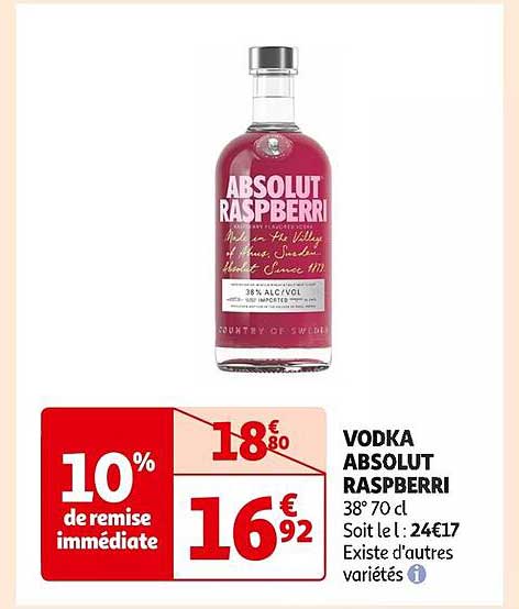 Offre de Vodka Absolut Raspberri chez Auchan Supermarché