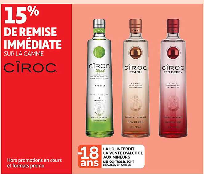 Découvrez dès maintenant la offre 15% DE REMISE IMMÉDIATE SUR LA GAMME CÎROC dans le catalogue de Auchan. Cette offre est valable du 16/09/2025 au 28/09/2025.