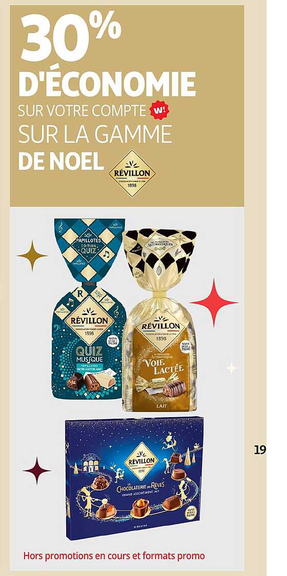 La saison des fêtes approche à grands pas, et quoi de mieux que de se faire plaisir sans se ruiner ? Avec cette promotion exceptionnelle de 30% sur la gamme de Noël de Révillon, vous pourrez découvrir des chocolats raffinés qui raviront vos papilles. Que vous souhaitiez vous faire plaisir ou offrir des douceurs à vos proches, cette offre est à ne pas manquer !