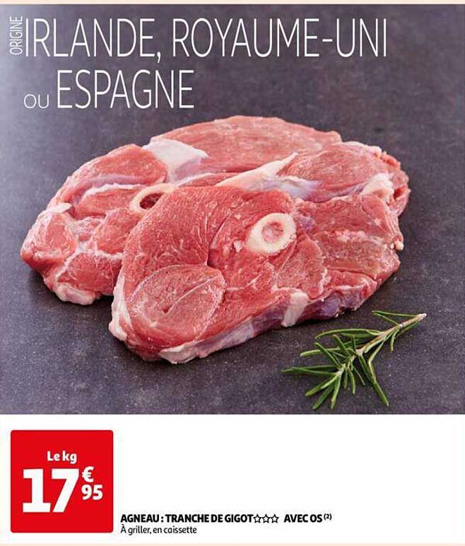 Découvrez l'offre de Agneau : Tranche De Gigot Avec Os chez Auchan! Cette offre fantastique est maintenant disponible dans le nouveau catalogue de Auchan. Profitez de cette occasion et économisez considérablement sur votre achat.