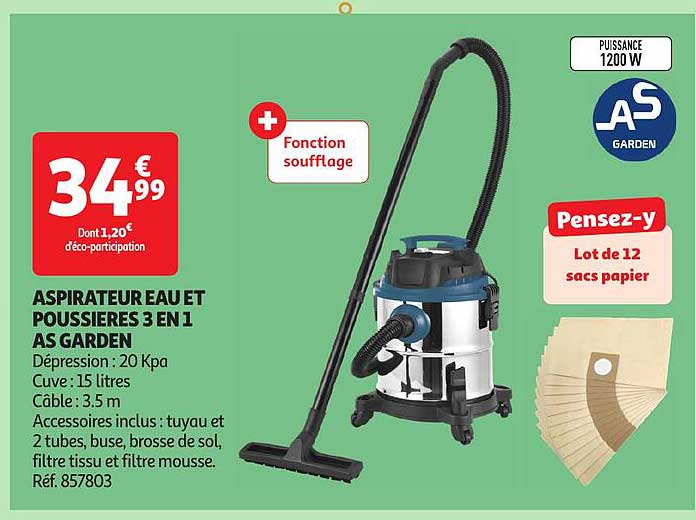Découvrez l'offre de Aspirateur Eau Et Poussières 3 En 1 As Garden chez Auchan! Cette offre fantastique est maintenant disponible dans le nouveau catalogue de Auchan. Profitez de cette occasion et économisez considérablement sur votre achat.