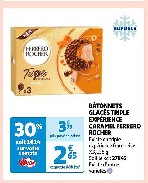 Offre de Bâtonnets Glacés Triple Expérience Caramel Ferrero Rocher chez Auchan