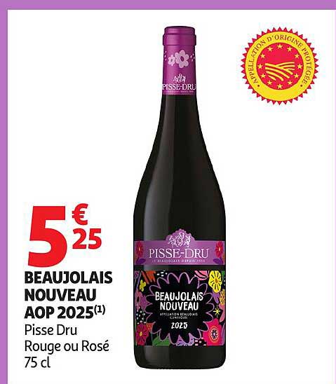 Découvrez dès maintenant la offre BEAUJOLAIS NOUVEAU AOP 2025 dans le catalogue de Auchan. Cette offre est valable du 18/11/2025 au 30/11/2025.