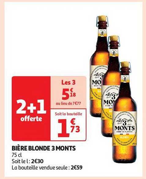 Découvrez dès maintenant la offre BIÈRE BLONDE 3 MONTS dans le catalogue de Auchan. Cette offre est valable du 17/09/2024 au 22/09/2024.