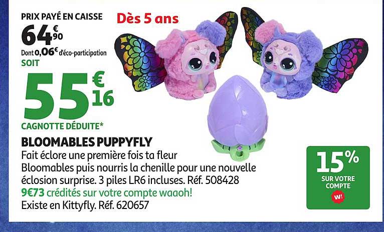 Découvrez dès maintenant la offre BLOOMABLES PUPPYFLY dans le catalogue de Auchan. Cette offre est valable du 21/10/2025 au 07/12/2025.