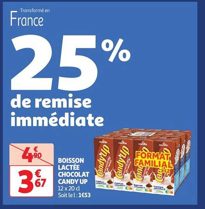 Découvrez l'offre de Boisson Lactée Chocolat Candy Up chez Auchan! Cette offre fantastique est maintenant disponible dans le nouveau catalogue de Auchan. Profitez de cette occasion et économisez considérablement sur votre achat.
